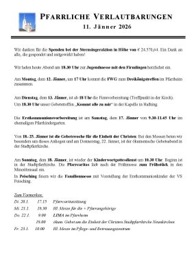 Verlautbarungen für die Woche vom 10.01.2026